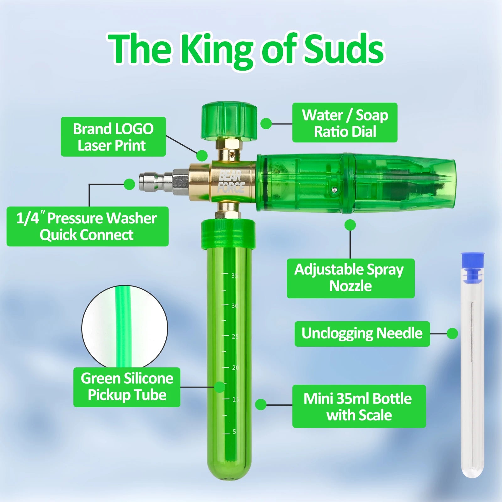 Green BEAR FORCE™ Adjustable Mini Foam Cannon | No-Dilution Foamer for Pressure Washers